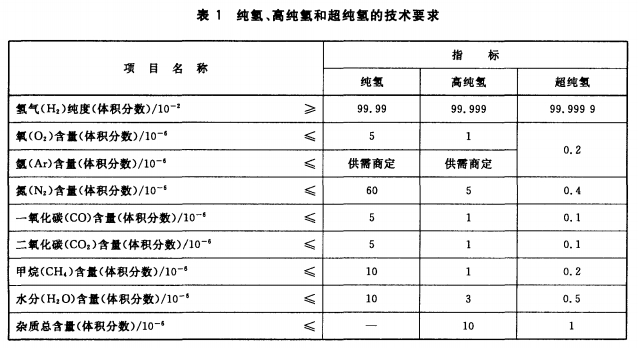 3.1纯氢、高纯氢和超纯氢的技术要求应符合表1的规定。